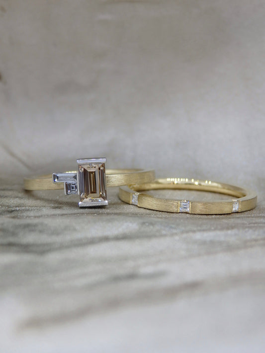 Pillar Steps - Argyle Champagne Baguette Diamond Trilogy Ring