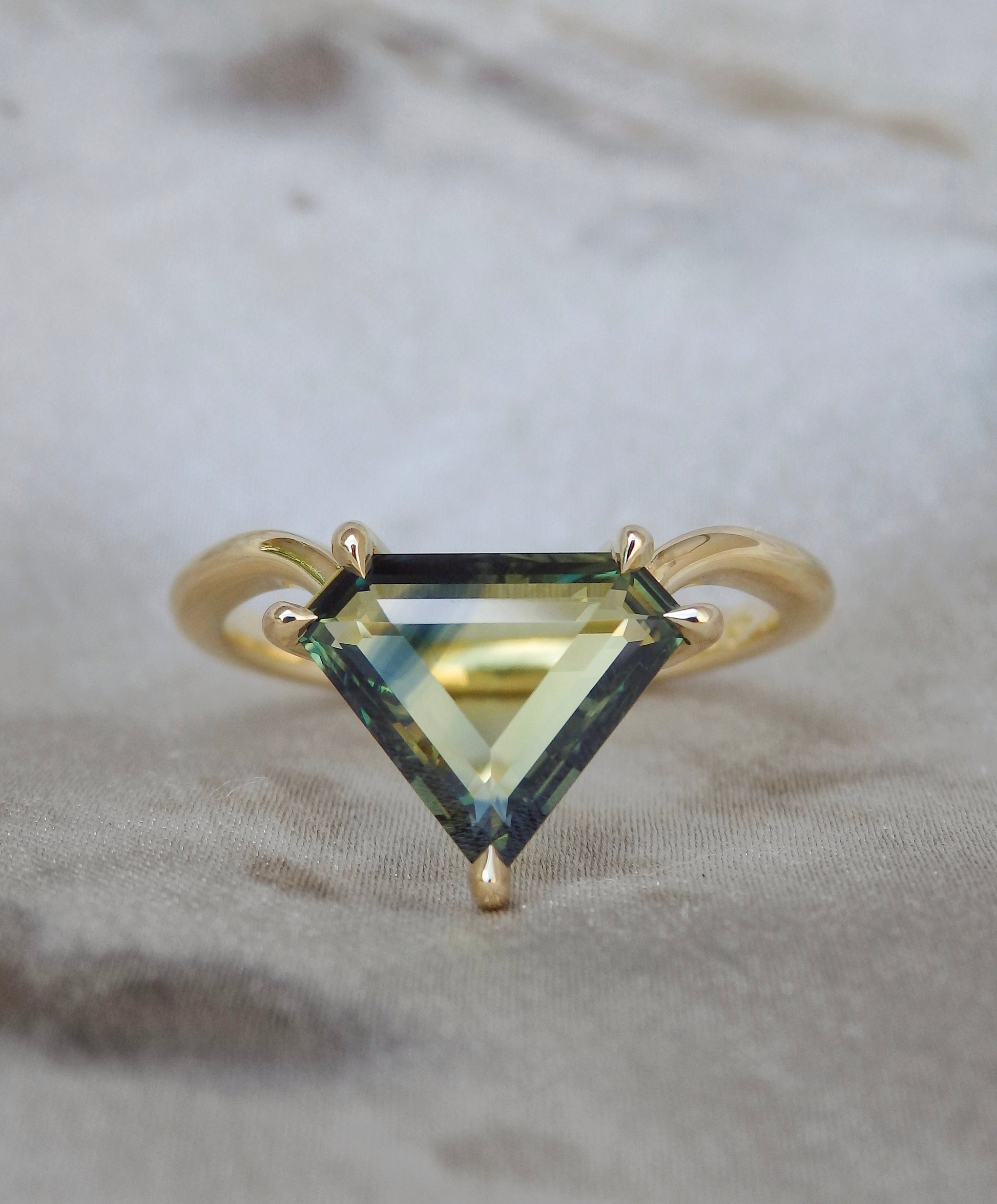 “Vitral” 2.60ct Unheated Australian Parti Sapphire Shield-Cut Solitaire Engagement Ring