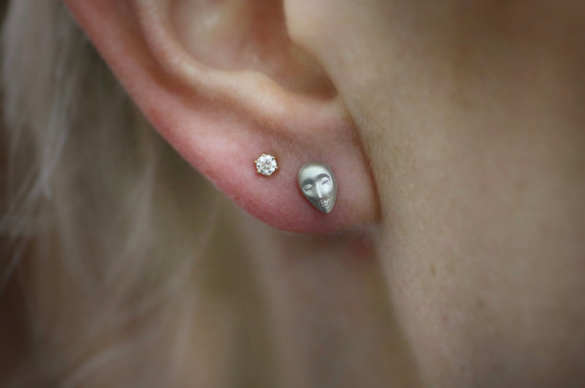 “Julia” Face Studs in Sterling Silver by Hugh Thyregod