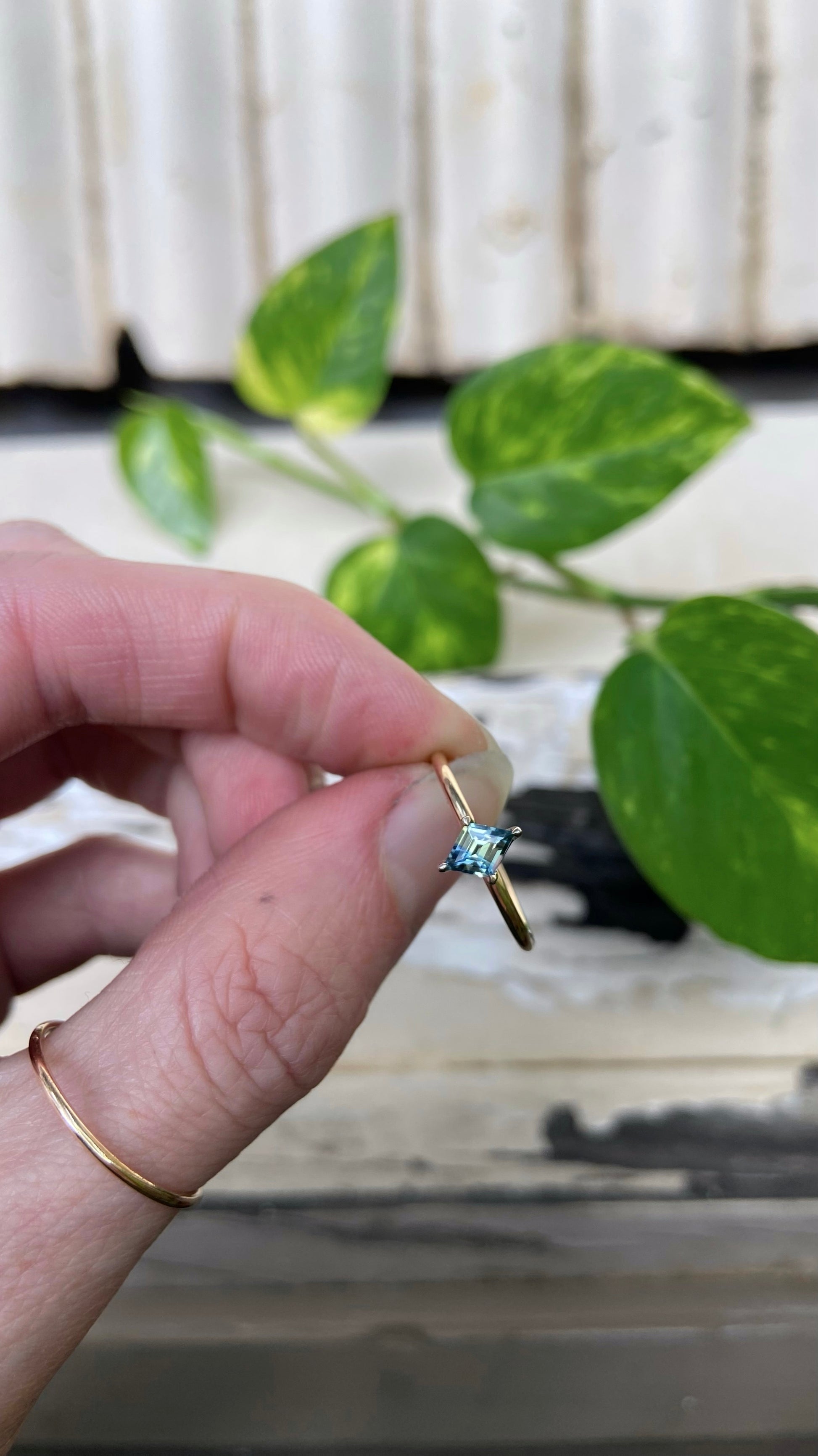 A beautiful little geometric blue Parti Sapphire from Queensland, set in a dainty 14ct gold solitaire