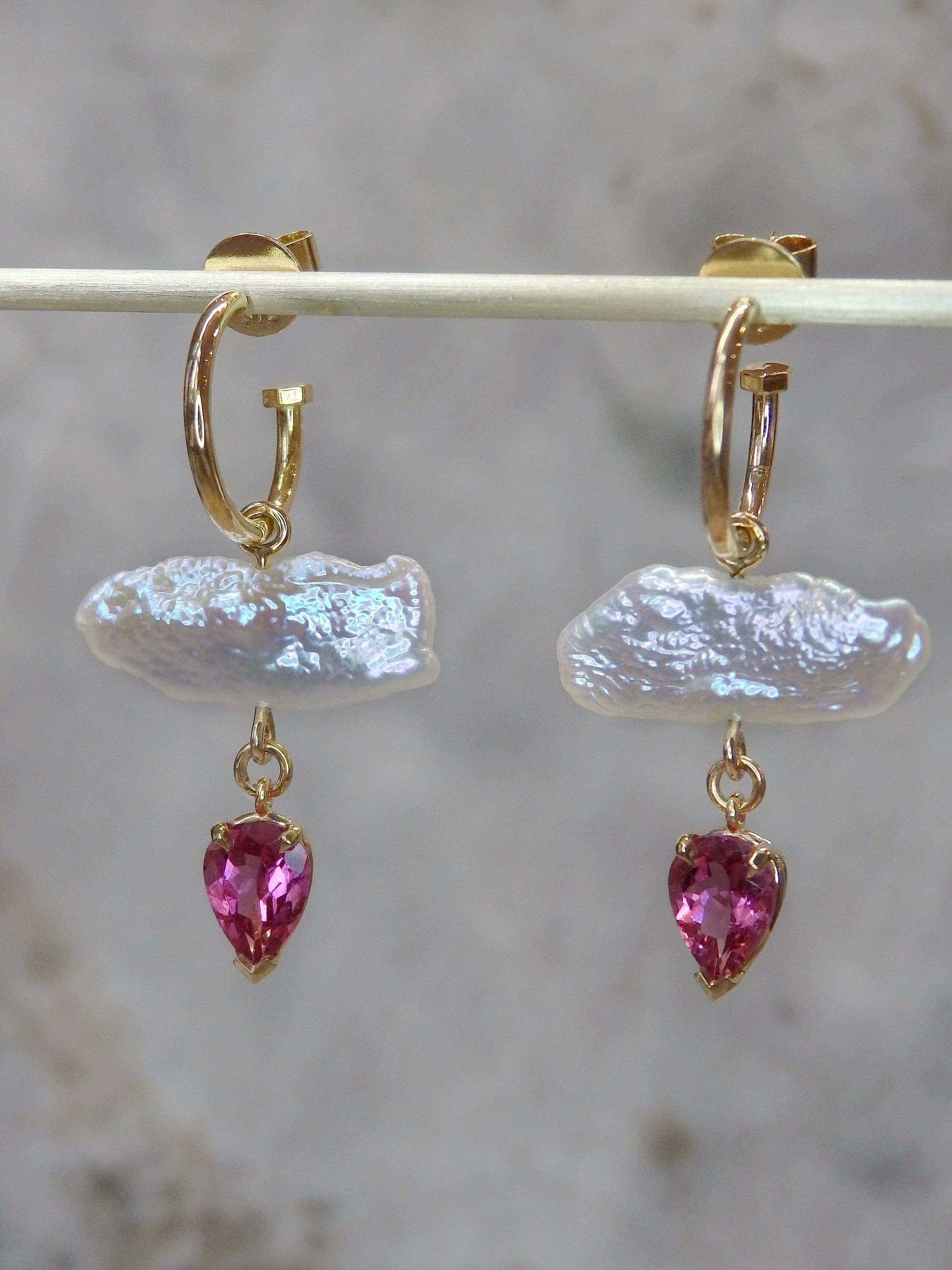 Seraya Earrings - Pink Tourmaline & Keshi Pearls