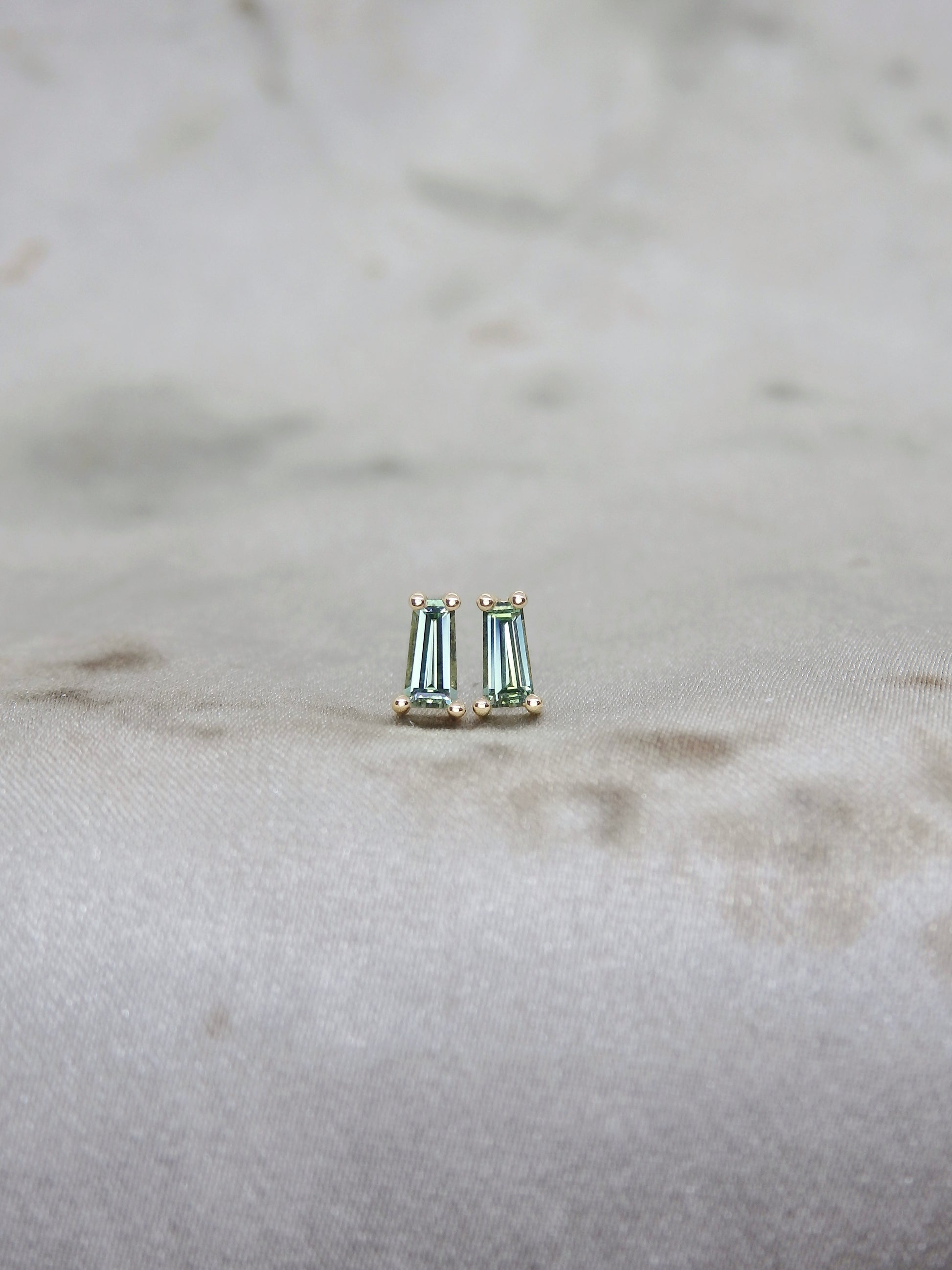Teal Tapered Baguette Sapphire Studs 18ct Gold