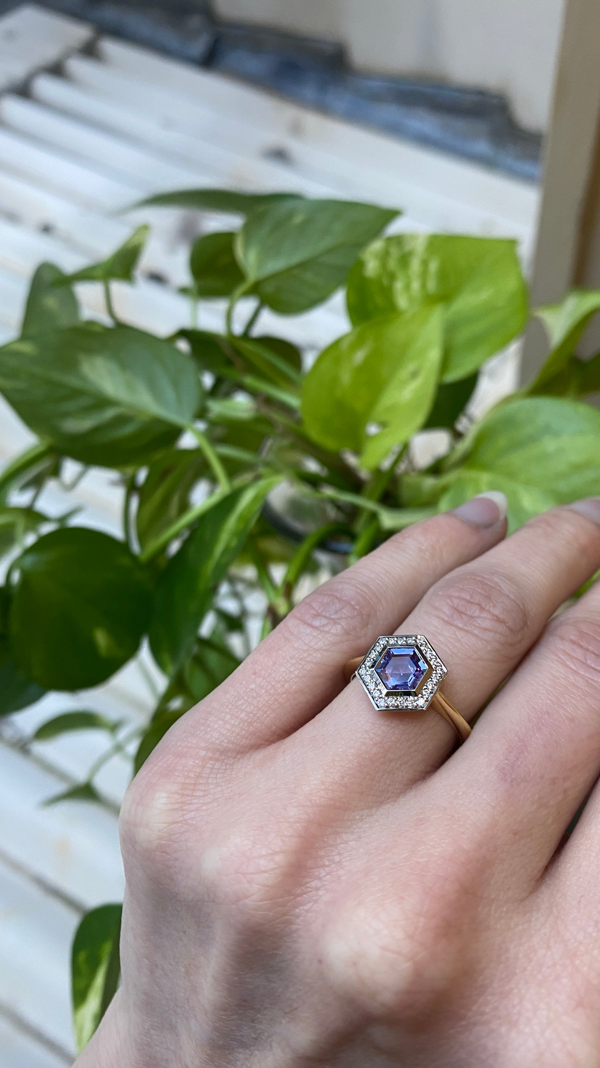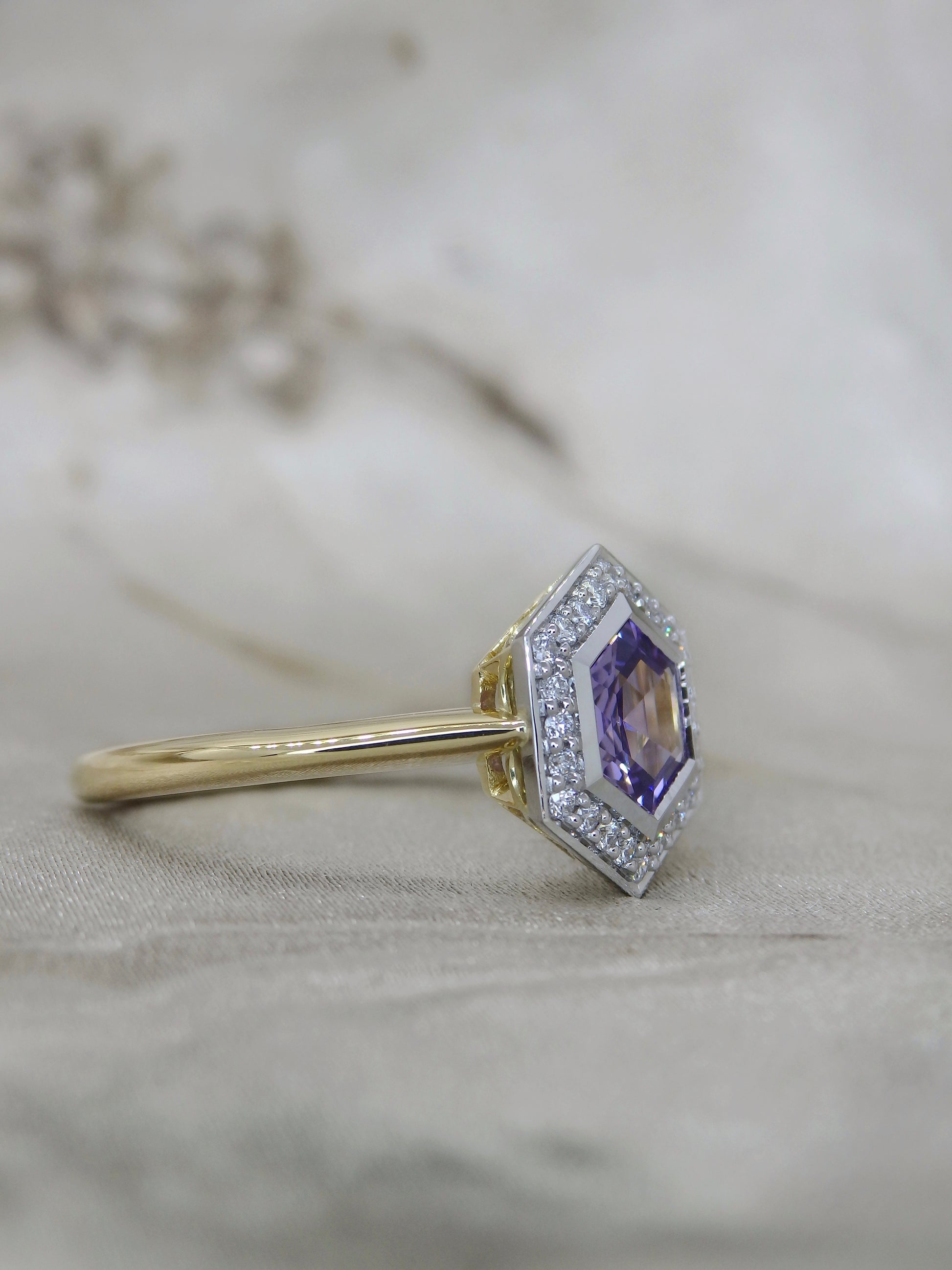 Manor - Unheated Lilac Hexagon Sapphire Halo Ring
